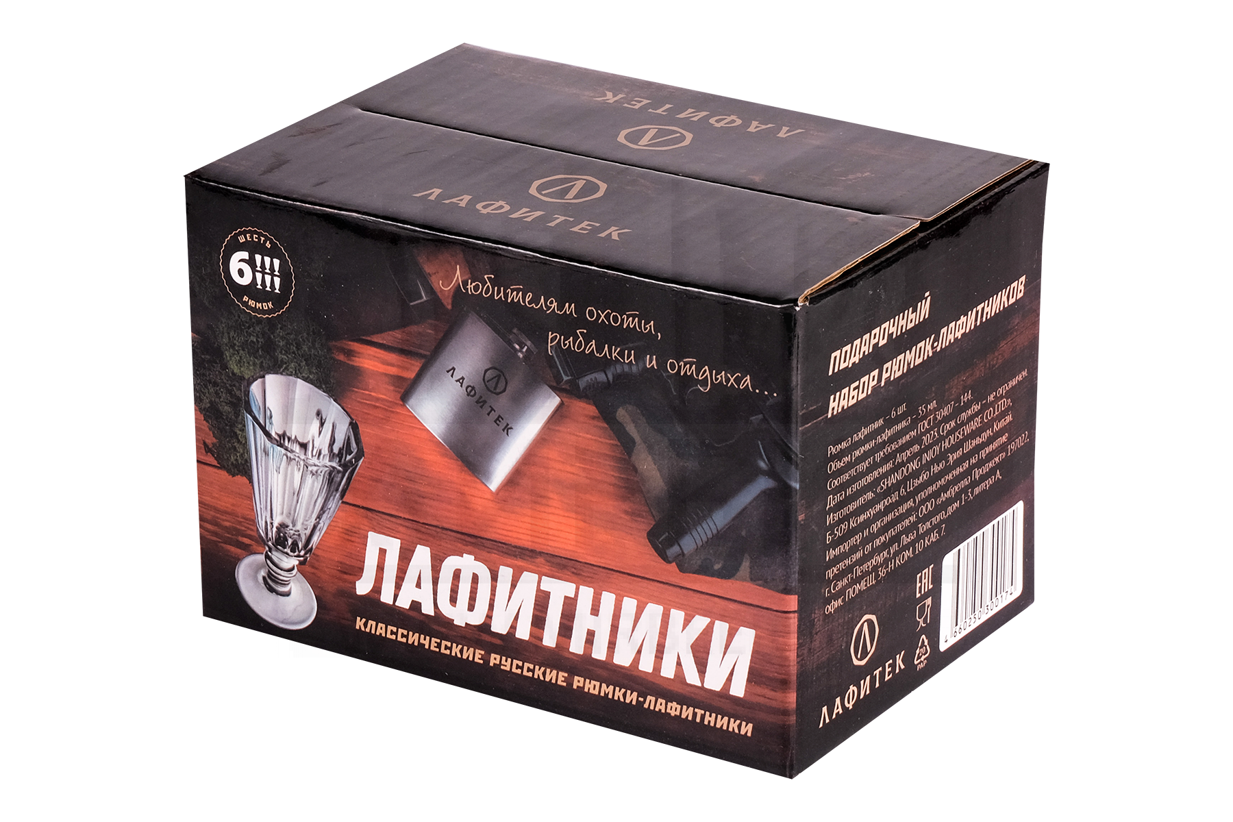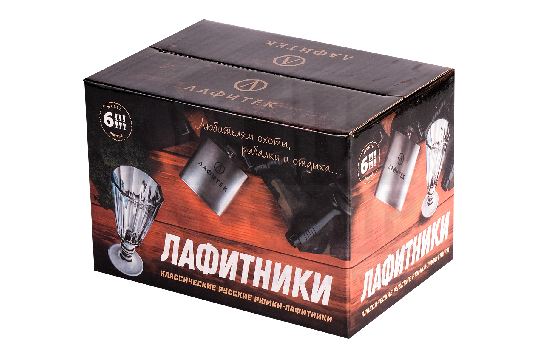 Подарочный набор из 6 рюмок-лафитников "ЛАФИТЕК" 35 мл "Охота и рыбалка"